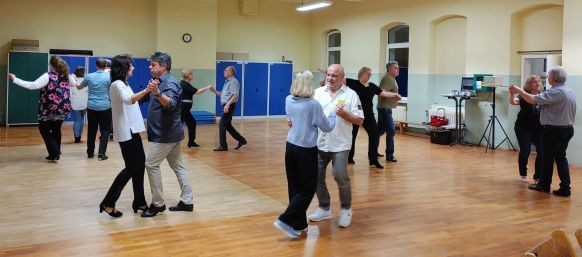 Der Trainer des Donnerstagskreises, Burkhard Meyer, hatte abwechslungsreiche und motivierende Tanzmusik von Chachacha bis Wiener Walzer dabei und auch Liebhaber besonderer Tänze kamen auf ihre