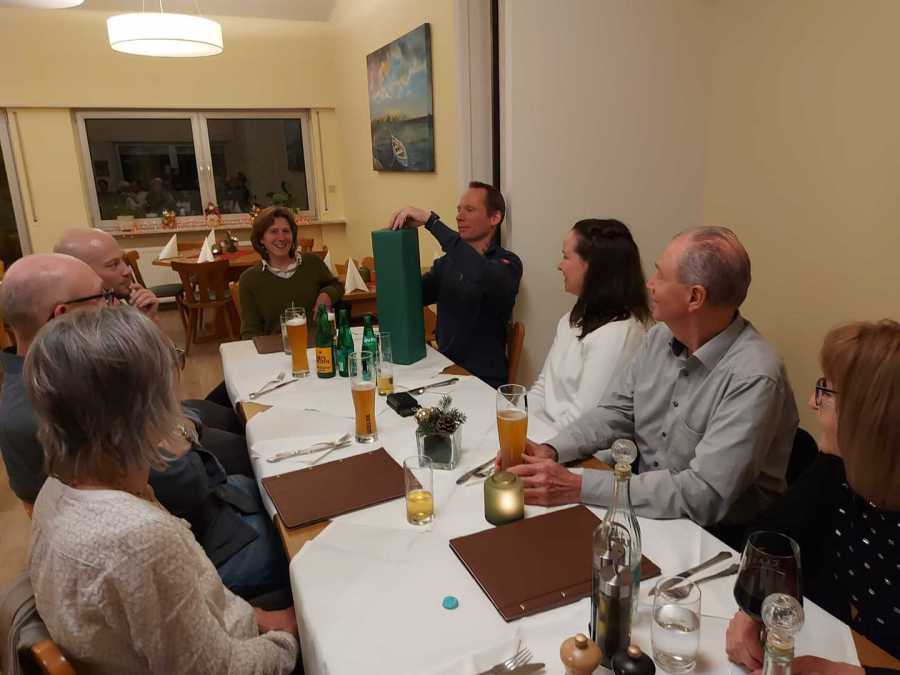 Das Tanzlehrerpaar Rolf Bechberger-Stier und Linda Stier hatte sich ebenfalls auf die Feier gefreut und waren sichtlich gerührt über das ausgewählte Geschenk, das ihnen Tanzkreisleiterin Kerstin Oberacker im Namen des Mittwochskreises als Dank für ihre hervorragende Arbeit überreicht hat. Ihr Engagement und ihre Leidenschaft machen den Tanzkreis zu etwas ganz Besonderem. Kerstin Oberacker bedankte sich auch bei der zweiten Tanzkreisleiterin Christina Klein, die sich um die Location gekümmert hat.